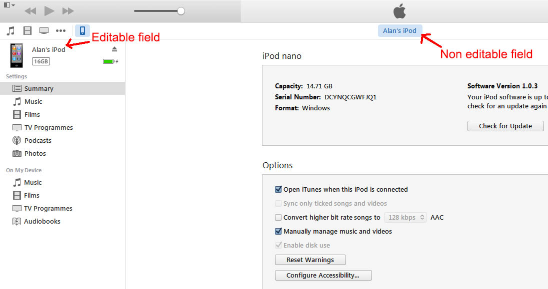 The names of apps are given by the designers, and cannot be altered. You can see this directly below the computer name field. In this example, my 60gb video ipod is just called ipod. Connect your ipod touch to your computer and open itunes. You can easily change the name of your iphone or ipad via itunes. How to change the name of your iphone or ipad. But there are good reasons why you might want to change it. You can make it say anything you want. This can become a minor annoyance if you sync your ipod and see it identified as the previous owner. Click on it and install and confirm. This default name is used for identifying the device when you plug it into a computer, when someone wants to airdrop file to you, or when you set up a personal hotspot. To change the settings and restore the ipod to its. Using your mouse, highlight the device as shown below: